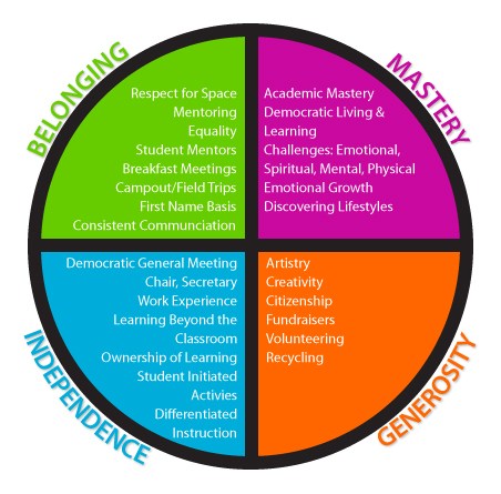 Alternative High School is a caring community that provides academic and personal support in respect of Circle of Courage philosophy. In an environment that supports student agency, learning and respect are paramount, individuals will be encouraged to explore their passions and have meaningful connections to their community.
